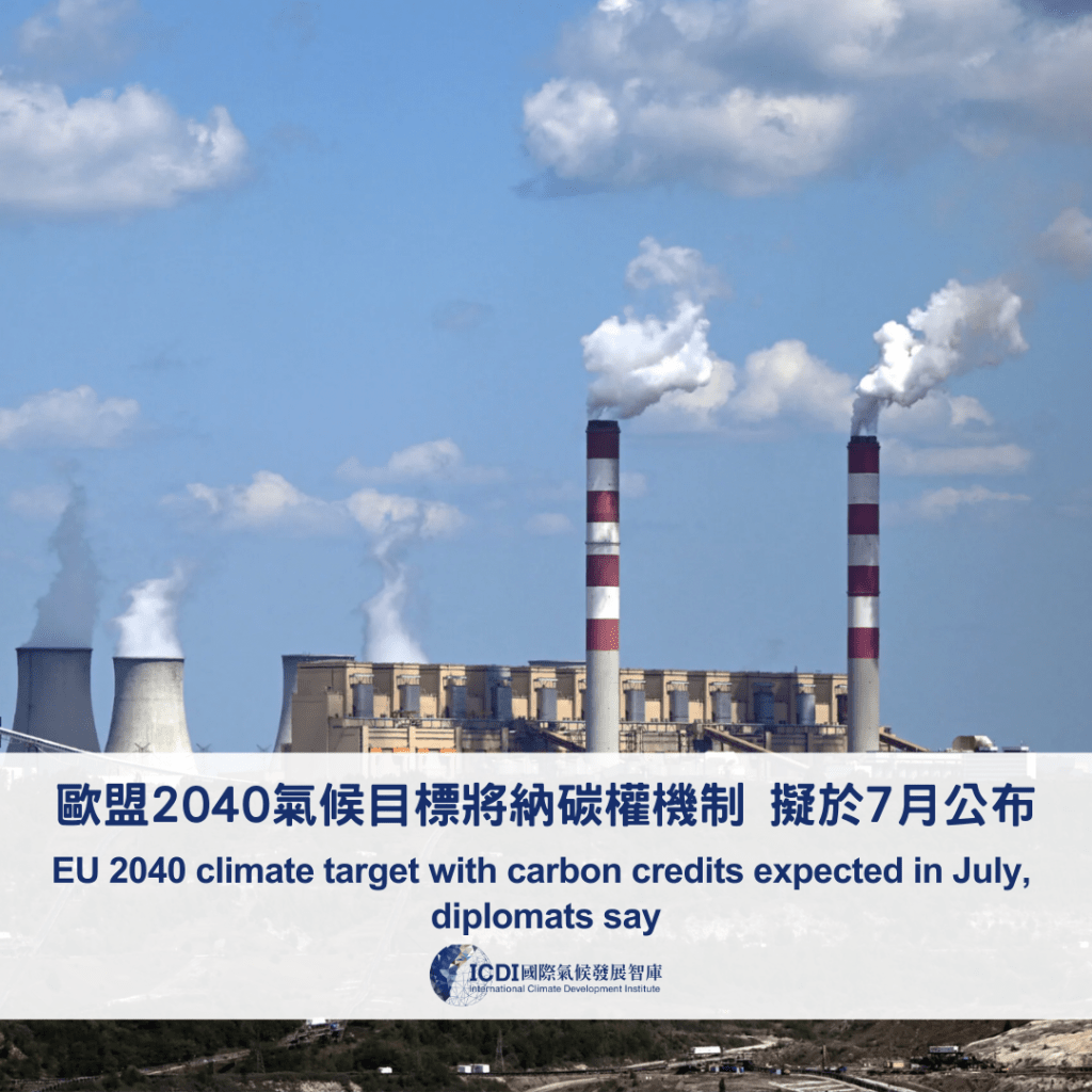 歐盟執委會預計於7月2日公布2040年氣候目標,將提議設定溫室氣體排放減少90%,並允許成員國採用更具彈性的方式達成,包含使用國際碳權。
