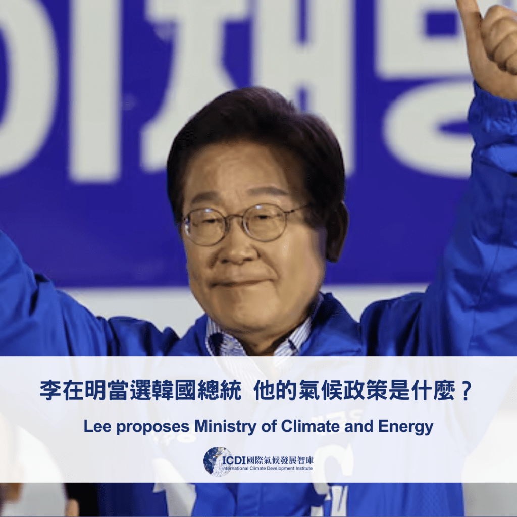 韓國共同民主黨候選人李在明(Lee Jae-myung)在6月3日大選中當選總統。他在競選時提出設立「氣候與能源部」政見, 此承諾並不在原先的十大主要政見之列。該部門目標是成為 #氣候 與能源政策的總指揮中心,積極應對溫室氣體減排與氣候危機,以達2050年淨零排放。不過政府內部對設立新部門也有疑慮,能源部門與產業、貿易關係密切,若分拆設立氣候與能源部,未來在政策執行上可能會面臨協調與整合的困難。
