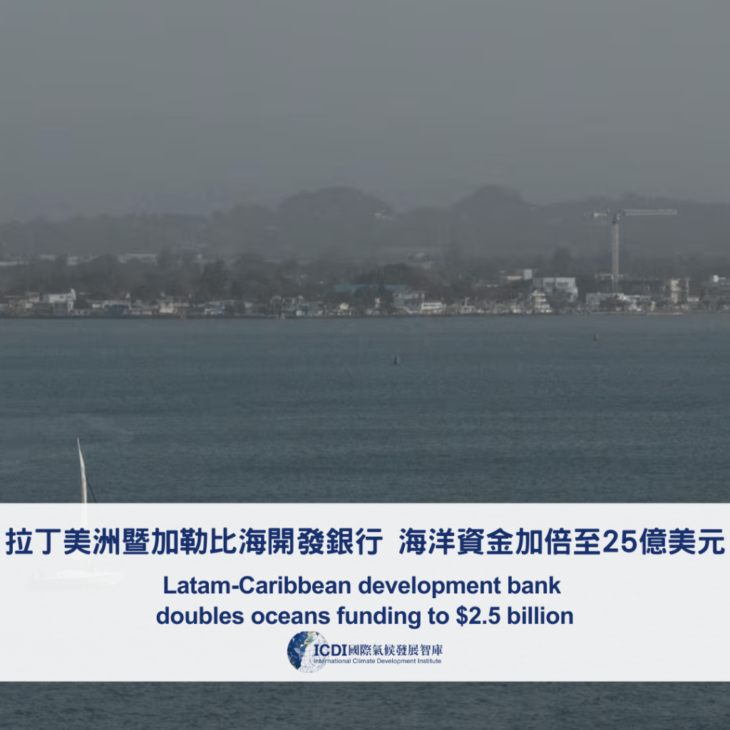 拉丁美洲暨加勒比海開發銀行(CAF)6月7日表示,保護海洋與支持永續 海洋經濟 活動的投資額將提高至25億美元。CAF原訂在2022至2026年間投入12.5億美元,用以強化海洋保護區及支持小規模漁業。CAF最新宣布將新增25億美元的資金,於2025至2030年間分階段投入在低碳海運交通、修復受損海洋生態系,以及發展永續海洋觀光。