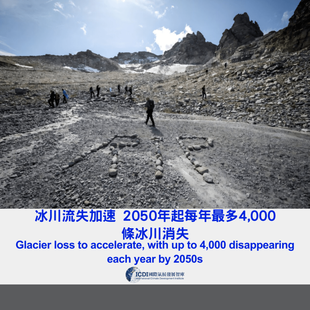 即使全球升溫被限制在1.5°C,每年消失的冰川數量仍將在2041年達到2,000條。