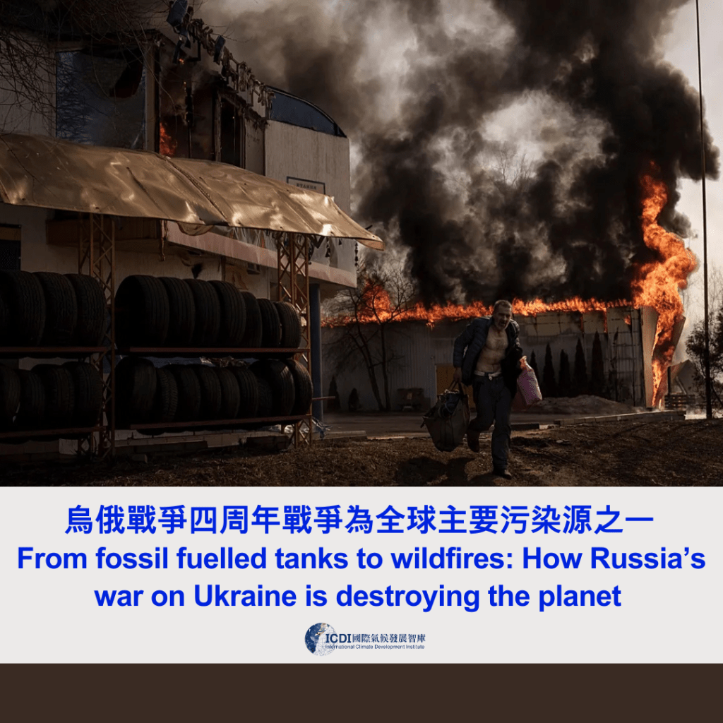 根據戰爭溫室氣體核算倡議(Initiative on GHG Accounting of War)最新報告指出,自2022年2月24日俄羅斯入侵以來,累積排放總量高達3.11億公噸二氧化碳當量;幾乎相當於法國一整年的排放量,或是全球為抽水所使用能源的年度排放總量。這些排放來源包括軍事行動(使用化石燃料的坦克與機械設備)、火災、能源基礎設施受損、人口遷移、民用航空以及戰後重建。