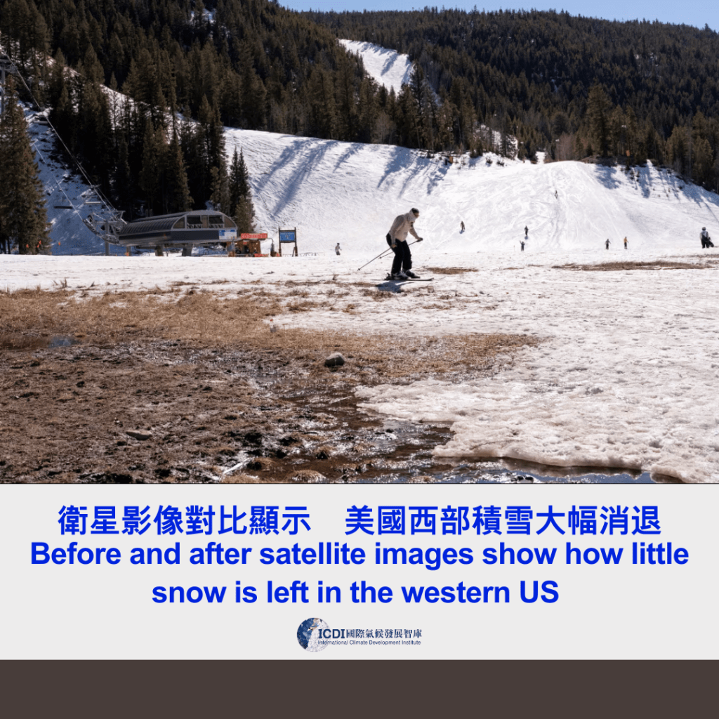 衛星影像顯示,美國西部在創紀錄高溫的3月影響下,原已偏低的積雪量(snowpack)進一步大幅融化,為高度依賴山區融雪供水之區域,帶來今夏嚴峻挑戰。