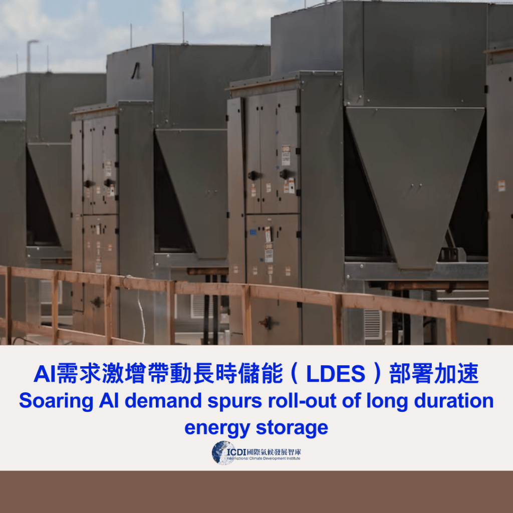 隨著資料中心(data center)開發商用電需求大幅攀升,促使市場對新興長時儲能(long duration energy storage, LDES)技術關注升溫,此類技術可提供全天候穩定之潔淨電力供應。
