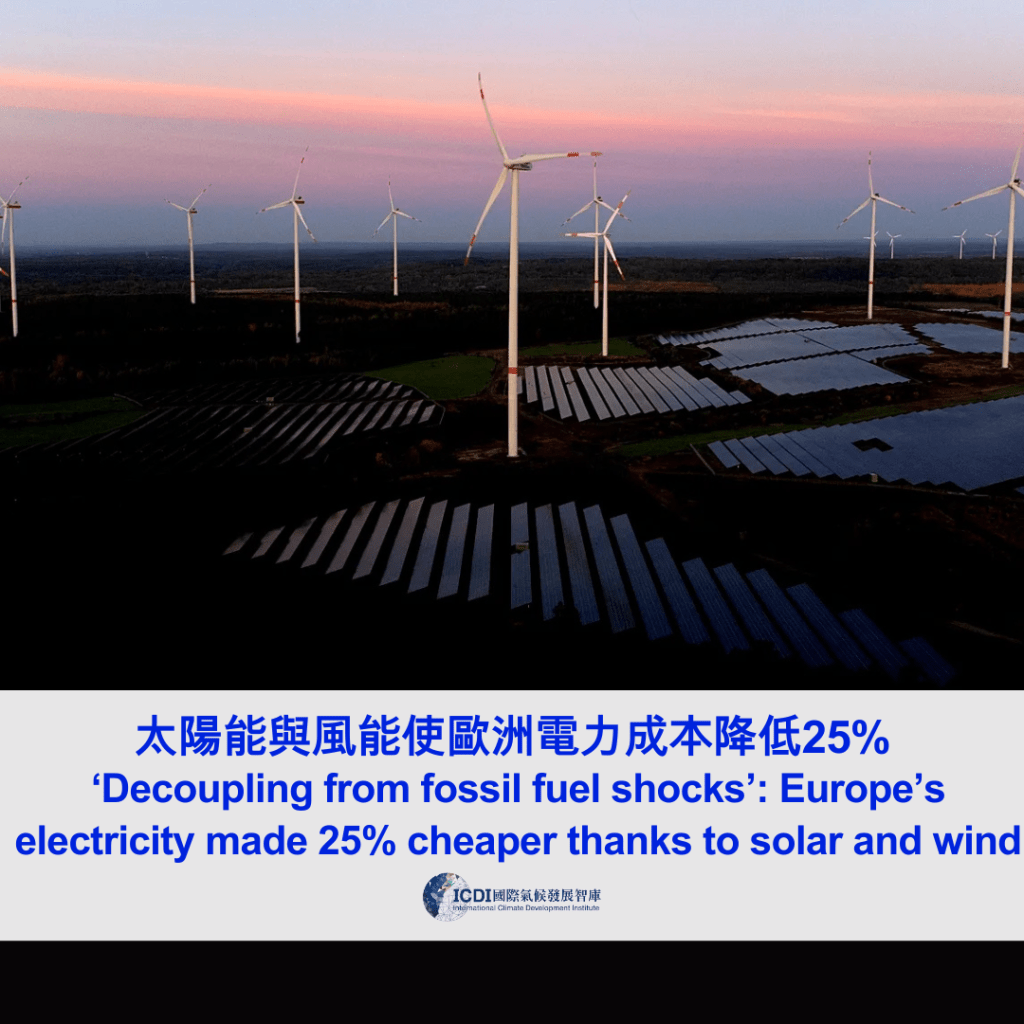 英國非營利組織Positive Money在報告中指出,在所分析的19個國家中,2023至2025年間,再生能源發電的擴張使電價平均下降了24.2%。越來越多研究顯示,再生能源在電力結構中取代高成本化石燃料發電的角色,有助於批發電價下降。數據也顯示,當更多再生能源併網時,對價格的影響會更加顯著。