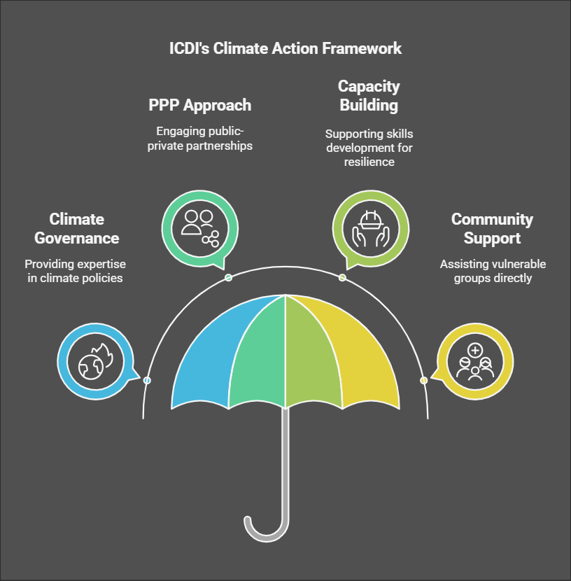 ICDI incorporates members of industry, governments, academia, and civil society in decision-making processes. Since its establishment in 2015, the organisation aims to foster international participation and networking, cross-discipline cooperation to form strategies to combat climate change, and the production of climate projects along with talent cultivation.